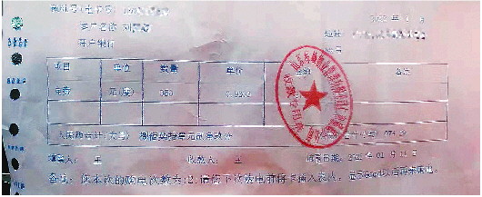 在刘先生提供的一张电费缴费收据上显示,1月11日刘先生从山东海峰物业管理有限公司仁和盛庭分公司处购买了950度电,单价为0.9203,共计874.29元。