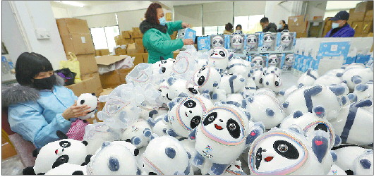 特许生产商加紧生产“冰墩墩”,缓解“一墩难求”。 新华社发