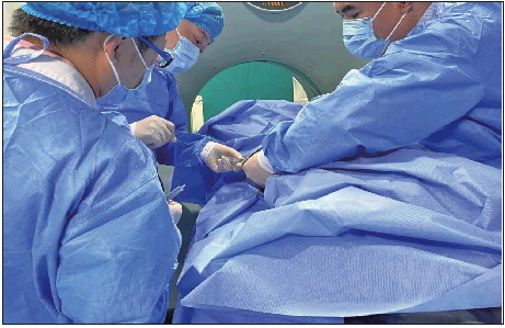 术前尹涛主管医师全面评估患者病情,认真分析其影像学资料,术中于CT引导下精确定位,精准操作,顺利完成粒子植入治疗。术后3天疼痛减轻,张大娘脸上露出了久违的笑容。2022年1月3日,张大娘出院之际,与家属连连道谢,逢人便说“区人民医院技术就是好,打了一针就不疼了”。
