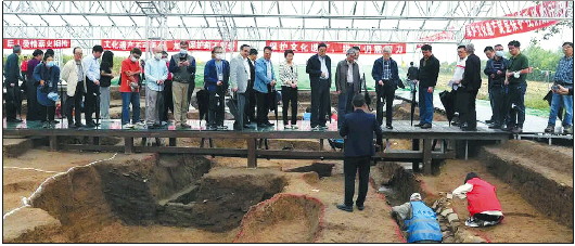 王志民等一行专家在稷下学宫遗址现场考察。