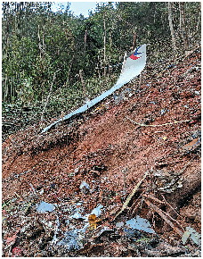 搜救人员在坠机现场发现的飞机残骸。新华社发