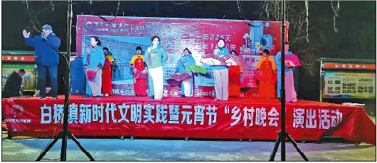 活跃群众文化,提升公众参与。今年是虎年,在党的领导下,群众的日子越来越好,精气神儿也越来越好了,元宵节期间,由村民自导自演的“乡村晚会”在白桥镇各村悄然兴起。2月14日晚,白桥镇白桥村在村文化广场举行的“乡村晚会”,拉开了全镇“村晚”的序幕。演员都是身边的邻里,演的都是身边人儿、身边事儿。各村都以不同的形式举办自己的“村晚”,尽管没有华丽的舞台、绚丽的灯光和精湛的演技,但他们依然放声高歌、尽情舞蹈,在“村晚”自己的舞台上演绎着新时代的美好生活。