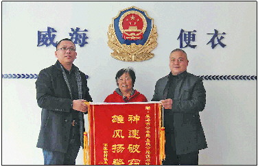 ◥贾长全(右)为被盗窃群众挽回损失。 威海公安供图