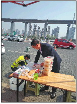 4月3日,热气腾腾的胶东大包子送到了济南东高速公路收费站。