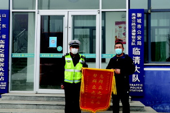 本报聊城4月7日讯(记者 李怀磊 通讯员 王文元 杨兰) 4月6日,一位驾驶员将一面写有“急群众之所急,帮群众之所需”的锦旗特意来到聊城高速交警临清执法站。