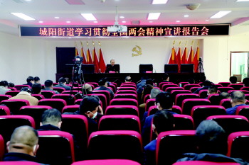 3月26日上午,城阳街道召开学习贯彻全国两会精神宣讲报告会。全国人大代表,岳家村社区党委书记、居委会主任,岳家村党支部书记许传江同志作专题宣讲报告,街道全体班子成员、副科级以上干部、社区书记、各村街支部书记、综合执法中队、自然资源规划所参加会议。