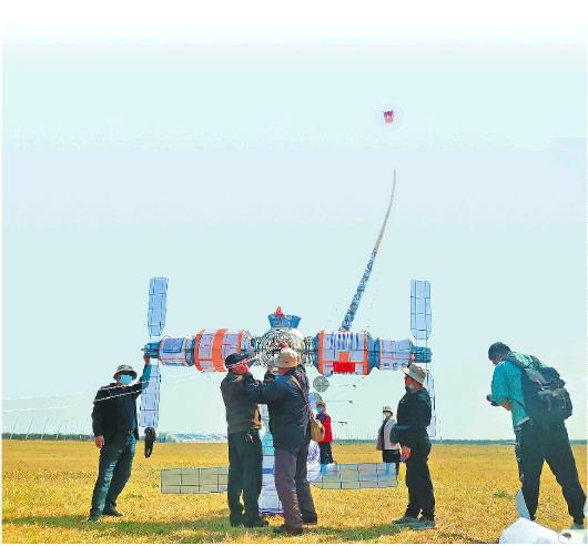 4月17日上午,一只以“中国空间站”为主题的巨型风筝在潍坊滨海国际风筝放飞场首次放飞。放飞过程中,“航天”风筝展示了神舟十三号载人飞船与天和核心舱成功交会对接,以及航天员出舱漫步的过程,整个场面甚是壮观,吸引了不少游客前来围观。