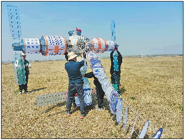 4月17日,以“中国空间站”为主题的巨型风筝在潍坊放飞。