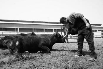 每天早晨6点起床巡查牛圈,观察每头牛的生长发育情况并做好登记,是韩海龙的必修课。“这头小牛是去年11月份出生的,也是我从小看到大的。”韩海龙指着其中的一头犊牛说。当时母牛产力不足,犊牛个头过大导致分娩困难,“自己和养殖场的其他人员进行助产,费了九牛二虎之力才接生出来。犊牛出来后因缺氧出现了休克,经过紧急的口鼻清理和倒提腹部按压才算挽救回来。”