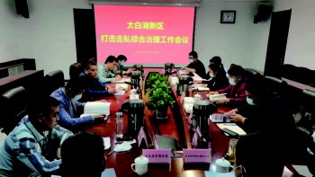 太白湖新区打击走私综合治理工作会议现场。