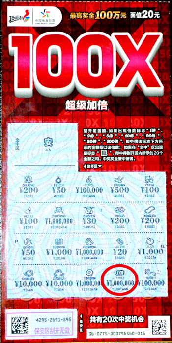 顶呱刮“超级加倍”超级给力!4月26日,山东省再爆顶呱刮百万大奖喜讯,来自东营市河口区购彩者现身山东体彩东营分中心兑奖大厅领取了“超级加倍”100万元,这也是全省“超级加倍”的第二个百万大奖。