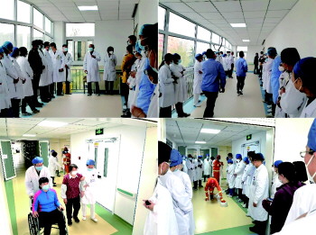 市北区人民医院为了强化扑救初期火灾和应对突发安保事件能力,近日例行上半年全院安全生产培训及演练。院办公会成员、各科主任护士长、工作人员和新入职人员,共计78人下午4点准时在门诊楼与住院二部连廊集结。院领导率领先进行集中培训,然后依次由内四科与保卫科联手操练处置寻衅不服从病房门禁管理者,内三科、内五科及微型消防站联手操练应急疏散住院患者、应用消防栓和灭火器扑救初起火灾,全体参练人员最后转移至后院操练灭火器实战扑灭明火,该院安全生产“大学习、大培训、大考试”专项行动稳固推进。 (贝仁奕)