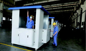 “我们的移动核酸采样工作站是为了顺应步行15分钟核酸检测‘采样圈’,助力常态化核酸检测新推出的产品,移动核酸采样工作站的布设快,在工厂组装完成之后马上就可以投入使用,工作站还配置转向脚轮,方便移动。”威海广泰医疗科技有限公司项目经理林飞介绍,相比传统板房、帐篷核酸采样工作站,移动核酸采样工作站内的正压环境和紫外消毒,可防止感染侵袭,同时免去穿防护服和护目镜,提高舒适性,有效减少战略性防疫物资使用,节省开支。