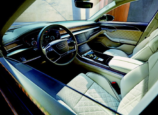 内饰方面,全新奥迪A8L Horch创始人版考究的用料,大气的风格,无时无刻不在传递出一种尊贵的信号。内饰化繁为简,一气呵成,环抱式的设计十分具有整体性,打开车门的瞬间,给人一种坐拥天地之感。