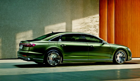 值得一提的是,全新奥迪A8L Horch创始人版车身颜色更为丰富,基于消费者需求与用户精神特质,A8L Horch不仅提供橡木绿(Oakgrun)、雨云灰(Nimbusgrau)两款独特性和质感度具兼的漆色选择,还创造性推出传奇黑配花剑银以及苍穹蓝配极光蓝等三种配色方案的双色车身设计,赋予消费者顶级尊贵的身份选择。