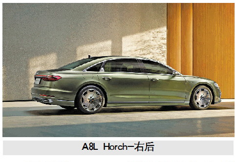 C柱上增加的“Horch”专属标识、镀铬外后视镜以及带有“H”标识的20英寸轮毂营造出强烈的专属感与尊贵感。车尾部分,集奥迪先进照明技术于一身的OLED尾灯,搭配全新设计的下包围与“Horch”标识,更是打造了极高的车身辨识度。