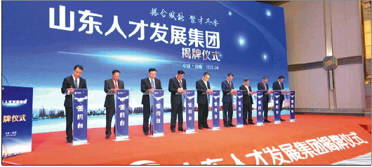 2021年4月18日,山东人才发展集团有限公司揭牌仪式在济南举行。这是全国首家省级人才集团。(资料片)