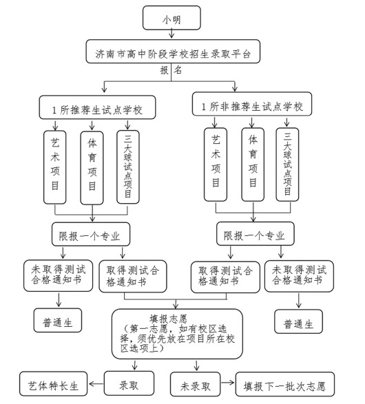 以济南考生小明为例,说明艺体特长生报考流程图。