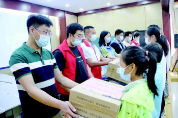 教育讲座结束后,志愿者们将精心准备的书包、文具等学习用品送到结对关爱的儿童们手中,帮助孩子们实现学习、生活中的微心愿,并为每一个孩子精心准备了蛋糕,共许愿、同祝福,鼓励孩子们好好学习,长大以后做一个对社会有用的人。