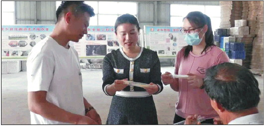 周晴晴(左二)和创业团队探讨羊肚菌种植。 受访者供图