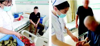 活动最后,医护人员还精心准备了寓意吉祥的艾草香囊、彩绳,为每一位患者及家属赠送粽子,与大家一起感受传统端午习俗,唤起了患者对传统节日的温馨回忆,此刻在这里不再只有冰冷的液体和治疗器具,还有更多的温情。