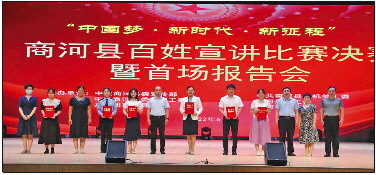 6月9日,商河县举办“中国梦·新时代·新征程”百姓宣讲比赛决赛暨首场报告会,济南市委宣传部副部长曹湧,市委讲师团副团长吕桂红到会指导,县委常委、宣传部部长王帅参加活动。