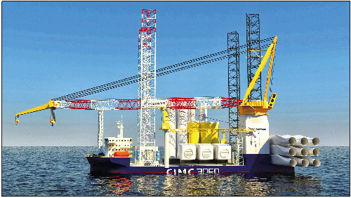 ◥中集来福士3060风电安装船效果图。