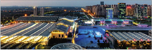 夜幕下流光溢彩的济南西站。