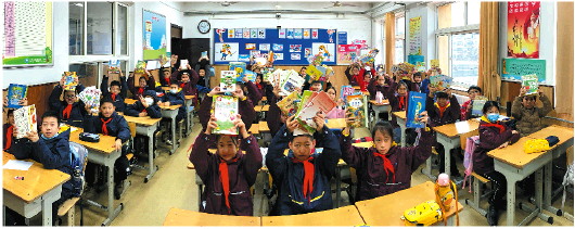 2月16日,济南市解放路第一小学五年级三班45名学生捐书162本。