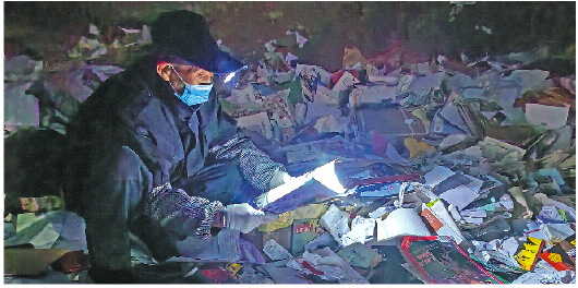 “淘书爷爷”钱玉田老人在废品回收站淘书,捐建爱心图书角。