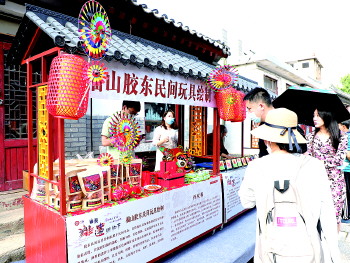 近日,在烟台所城里,一场别开生面的福山非遗展示活动吸引了上千名游客驻足观赏并参与:鲁菜烹饪技艺、福山剪纸……十多个非遗保护项目让游客亲身感受到了非遗的乐趣。