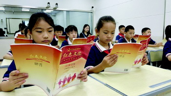 学生在读聊城《红色文化》丛书。