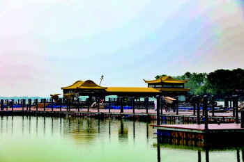 码头边停着两艘古色古香风格的游船。樊桂伟说,此次工程中购置了一艘新游船,游客们可以选择乘着游船环湖游一周,一览公主岛风光。乘游船环湖游览一圈约16.5公里,30至40分钟,欣赏环湖两岸风光,途经观景平台、主题公园、老运河人工湿地等景点。另外,游客们也可以选择乘坐观览车,路过双龙桥,通过迎宾大道,看东山西山、北湖阁广场,再到亲水平台、鼎湖广场。