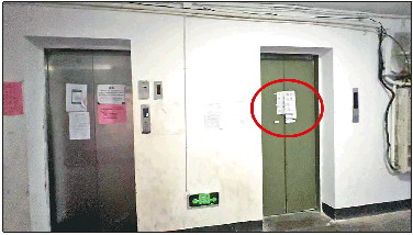 长城小区6号楼东侧电梯已经停运一年多的时间。