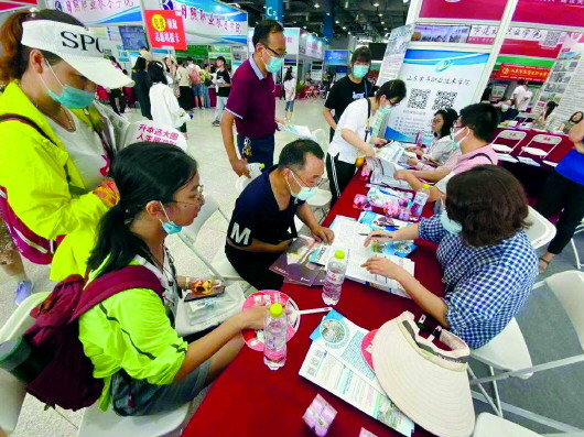 高招会上,考生和家长认真咨询。(资料片)