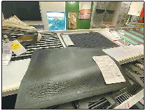 记者看到,郭先生家的这块门垫呈黑色,长60厘米、宽40厘米,正面呈毛质手感,背面则是橡胶材质。
