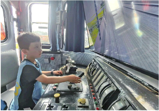 图为小学生在体验当一把“火车司机”的感觉。 记者 王瑞超 报道 济南铁路局供图
