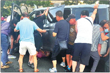 女子被卷车底,20余位市民抬车救人