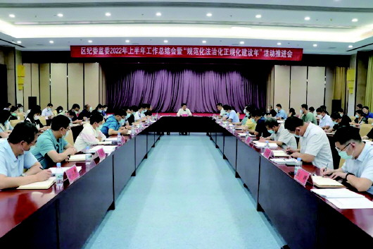 7月22日下午,文登区纪委监委召开2022年上半年工作总结会暨“规范化法治化正规化建设年”活动推进会,深入贯彻落实市纪委监委上半年工作总结会议精神,梳理总结上半年工作,研究部署下半年重点任务。文登区委常委、区纪委书记、区监委主任韩帅出席会议并讲话。
