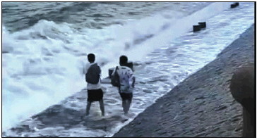 两人在海岸边游玩。 视频截图