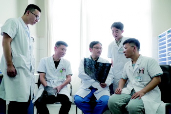 魏玉镇(右三)及其团队,研讨患者病情。