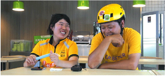 即便是手把手教,李同宝吃过的亏,张志美一样都没落下。单子贪多,结果送不完;弄不清路,结果白跑;商家出不了餐,难免急赤白脸;路上着急速度太快,结果车子摔了,人也受伤……磕磕碰碰了半年,才算是真正“入行”。
