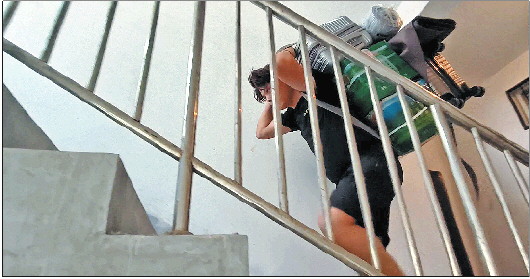 “前三层最轻松,基本感觉不到累,再往上就开始累了,到了五楼腿就开始发软、发抖,这个时候就得停下来歇歇了,如果站不稳就危险了。”方兆盛嘴里说的歇歇可不是找个地方坐下来休息休息,而是背着冰箱,弓着身子站在原地喘口气。“半路上不能放,一放就背不起来了。”喘息片刻后,方兆盛再一鼓作气爬到七楼,找个合适的地方,把冰箱小心翼翼地放下来。至此,这一趟的任务算是完成了。“放下东西的那一刻,心里就一个字——爽!”方兆盛说。