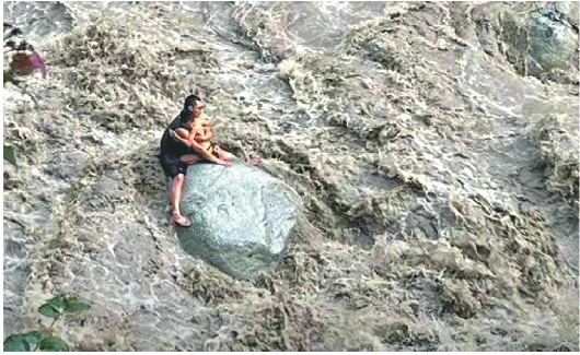王女士说,事发时她和爱人、8岁的孩子一起,正要横穿河道到对面的路上,“我们过河时,就听到河岸路上有人喊‘山洪来了’,我一回头,就看到洪水沿着河冲我这边来了。”