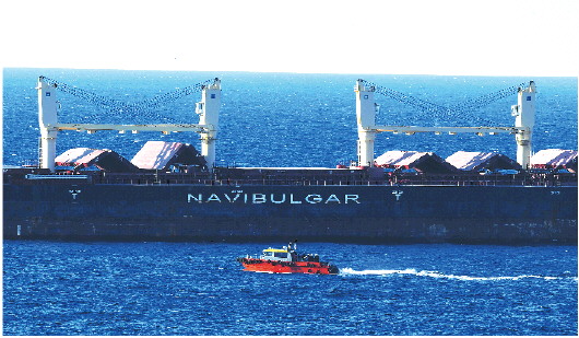 8月6日,从乌克兰出发的第二批运粮船抵达土耳其博斯普鲁斯海峡黑海入海口附近。 新华社发