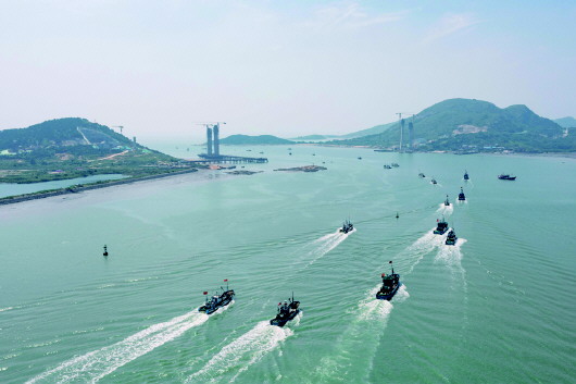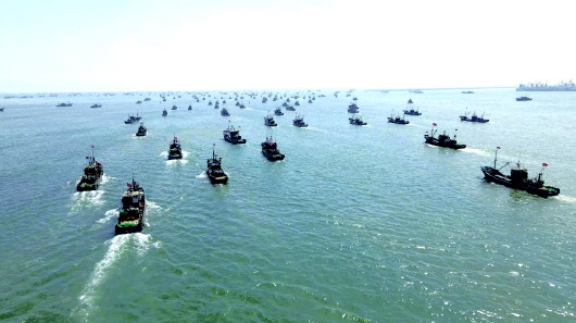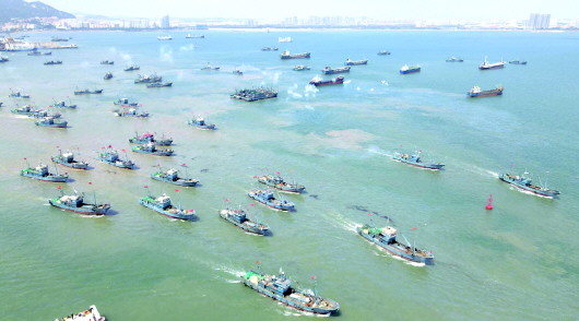 随着中午12时的到来,蓄势以待的渔船有序地驶出,奔赴蔚蓝的大海,开启了新一轮的“耕海”。