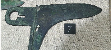 这是菏泽市内博物馆收藏展出的古代兵器中唯一一件刻有文字的戈,有非常重要的研究价值。据了解,该青铜戈是1990年9月成武县文物管理所征集的,于1972年出土于该县的小台遗址,同时出土的还有一件铜矛。