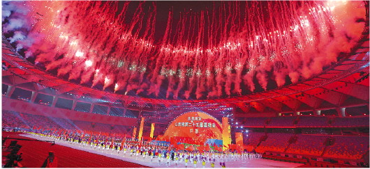 日照为省运会开幕式带来了“全新形象”。 记者 刘涛 摄