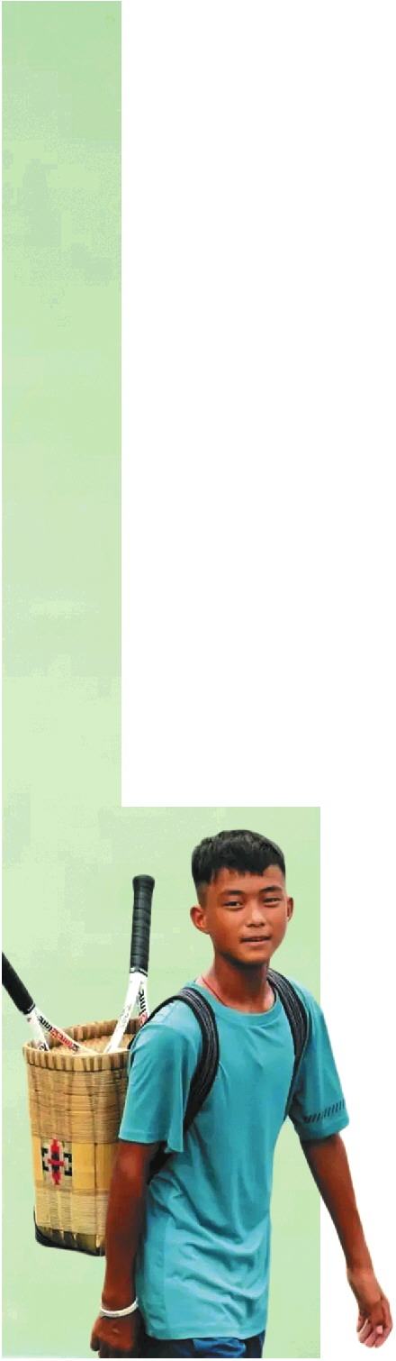 “如果不是网球,我还在家里帮助父母干农活。我们就是背着小背篓到农田里,这是我们佤族的特色农具……”王发的父母40多岁,是山区里的一对普通农民。王发在家排行老大,他还有一个弟弟和一个妹妹。
