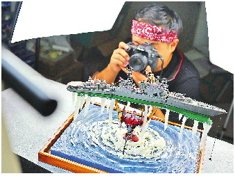 吴乃飞正在专心制作模型场景。